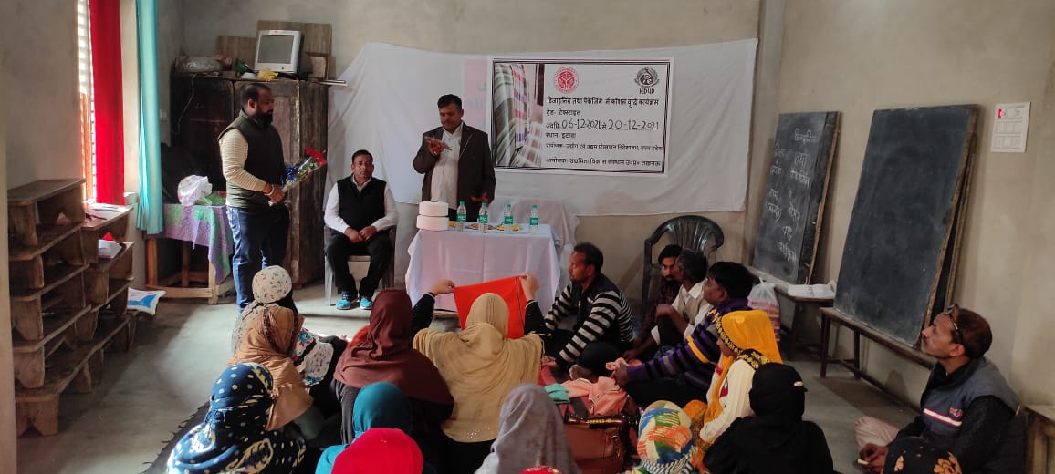 Program:- Designing and Packaging, District:- ITAWA, Trade:- TAXTAIL WORK-2 Time, Training period: 15 days Place:- ITAWA (U.P.), Sponsor Directorate of Industry and Entrepreneurship Promotion, Kanpur, Uttar Pradesh, Organizer Udyamita Vikas Sansthan, Lucknow, Partner Organization Pahal The Beginning Lucknow, Uttar Pradesh,