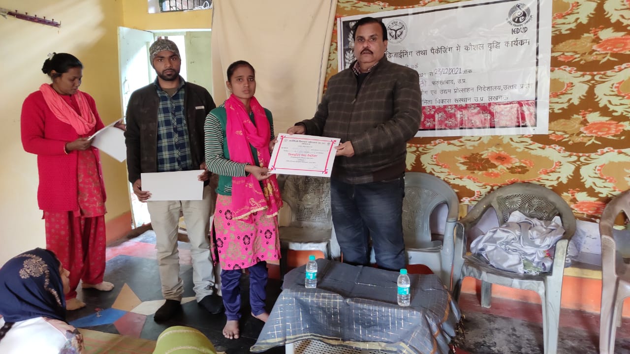 Program:- Designing and Packaging, District:- Farukhabad, Trade:- Zari Work 2 Time, Training period: 15 days Place:- farukhabad (U.P.), Sponsor Directorate of Industry and Entrepreneurship Promotion, Kanpur, Uttar Pradesh, Organizer Udyamita Vikas Sansthan, Lucknow, Partner Organization Pahal The Beginning Lucknow, Uttar Pradesh,
