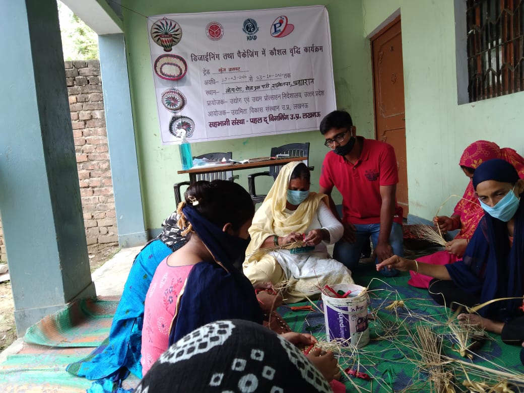 Program:- Designing and Packaging District:- Prayagraj, Trade:- Moonj Craft , Training Period: 15 days Venue:- Maheba Road Maheba Purba Patti, Prayagraj (U.P.) Sponsor Directorate of Industry and Entrepreneurship Promotion, Kanpur, Uttar Pradesh, Organizer Udyamita Vikas Sansthan, Lucknow, Partner Organization Pahal The Beginning Lucknow, Uttar Pradesh