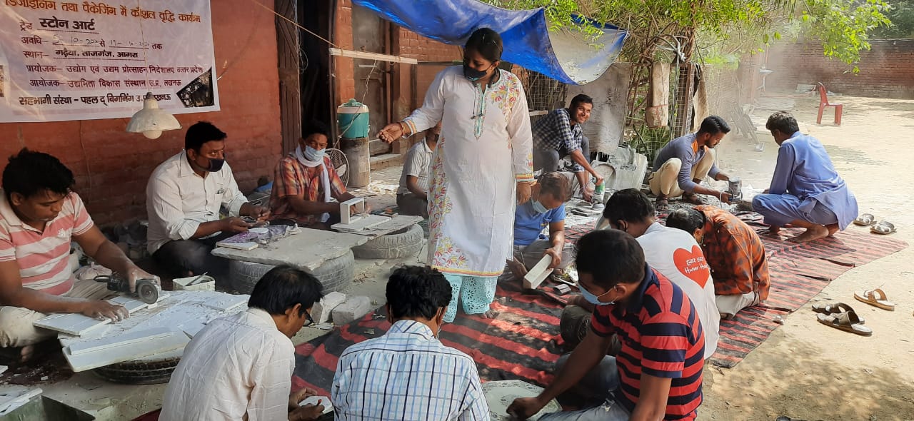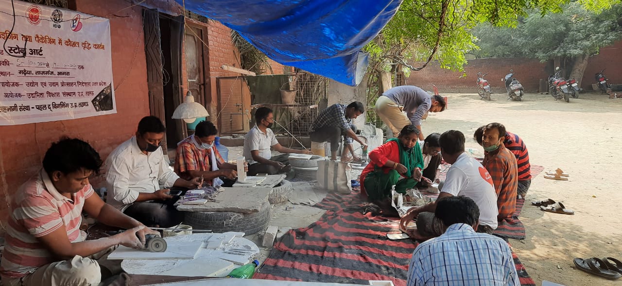 In district-Agra, a workshop on stone work was organized by Pahal The Beginning in which 25 participants received 15 days training which was a very successful program.